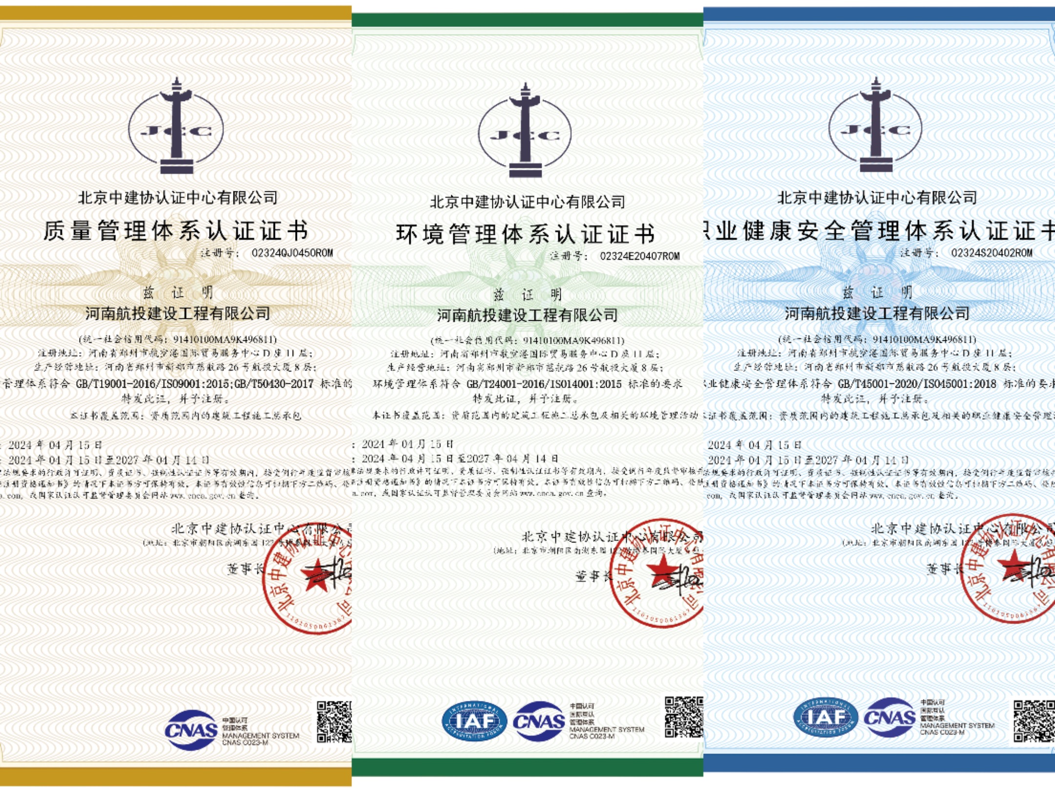 4月15日,河南航投建設(shè)工程有限公司(以下簡稱航投建工)通過ISO9001質(zhì)量管理體系、ISO14001環(huán)境管理體系、ISO45001職業(yè)健康安全管理體系(以下簡稱ISO三體系)認(rèn)證并獲得證書,這標(biāo)志著航投建工的規(guī)范化標(biāo)準(zhǔn)化管理邁上新臺階,為持續(xù)提升市場競爭力、拓展合作新領(lǐng)域打下堅實基礎(chǔ)。
