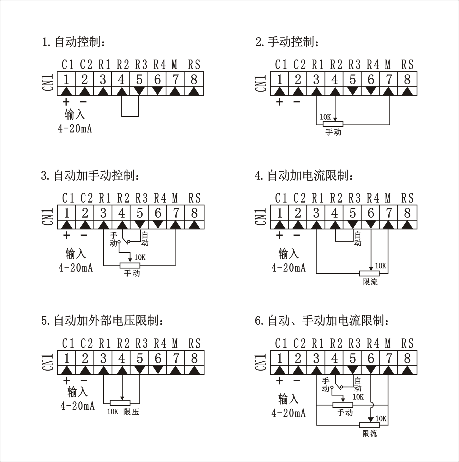 用戶可根據實際使用需要,選擇接線方式。下圖列出了常見的接線組合,供設計時參考。