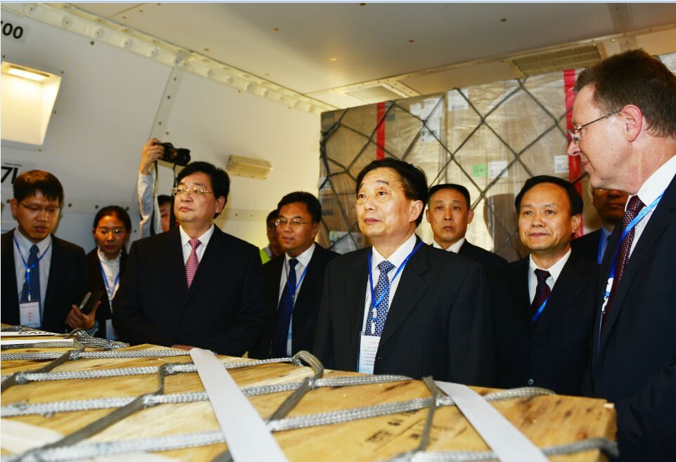 出席盧貨航45周年慶祝儀式的有河南省副省長(zhǎng)李亞、省長(zhǎng)助理安惠元、省政府副秘書(shū)長(zhǎng)馬剛。河南航投董事長(zhǎng)、黨委書(shū)記張明超,總經(jīng)理、副董事長(zhǎng)、黨委副書(shū)記劉建葆,公司領(lǐng)導(dǎo)班子其他成員及相關(guān)業(yè)務(wù)負(fù)責(zé)人參加了慶祝儀式。適逢盧貨航2015年全球經(jīng)理人大會(huì)在鄭州召開(kāi),前來(lái)參會(huì)的50多位來(lái)自全球各個(gè)地區(qū)的區(qū)域經(jīng)理和重要部門(mén)負(fù)責(zé)人與中方人員一起,在鄭州機(jī)場(chǎng)見(jiàn)證了這一具有歷史意義的時(shí)刻?,F(xiàn)場(chǎng)工作人員向機(jī)組人員獻(xiàn)上鮮花,隨后,雙方代表登機(jī)視察。