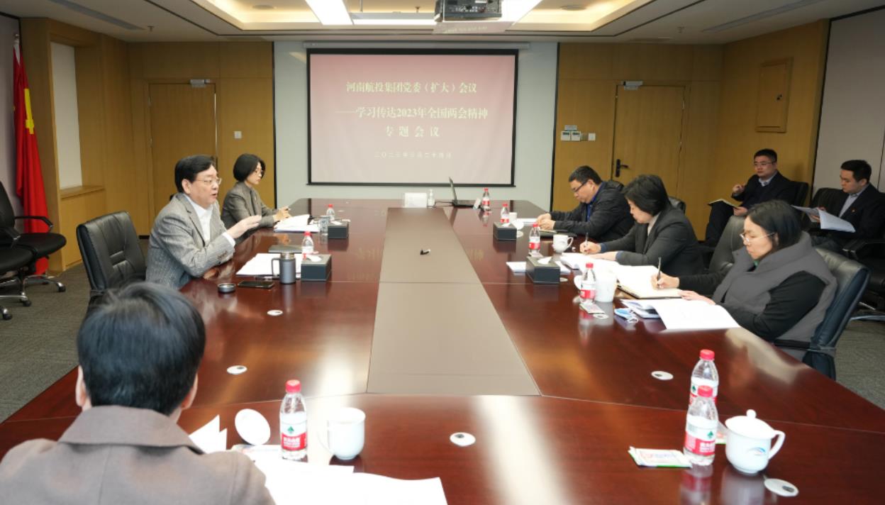 3月24日,河南航投集團(tuán)召開黨委(擴(kuò)大)會議,集中學(xué)習(xí)習(xí)近平總書記重要講話和全國兩會精神,安排部署貫徹落實(shí)工作。集團(tuán)黨委書記、董事長張明超主持會議,領(lǐng)導(dǎo)班子其他成員和部分中層管理人員參會。