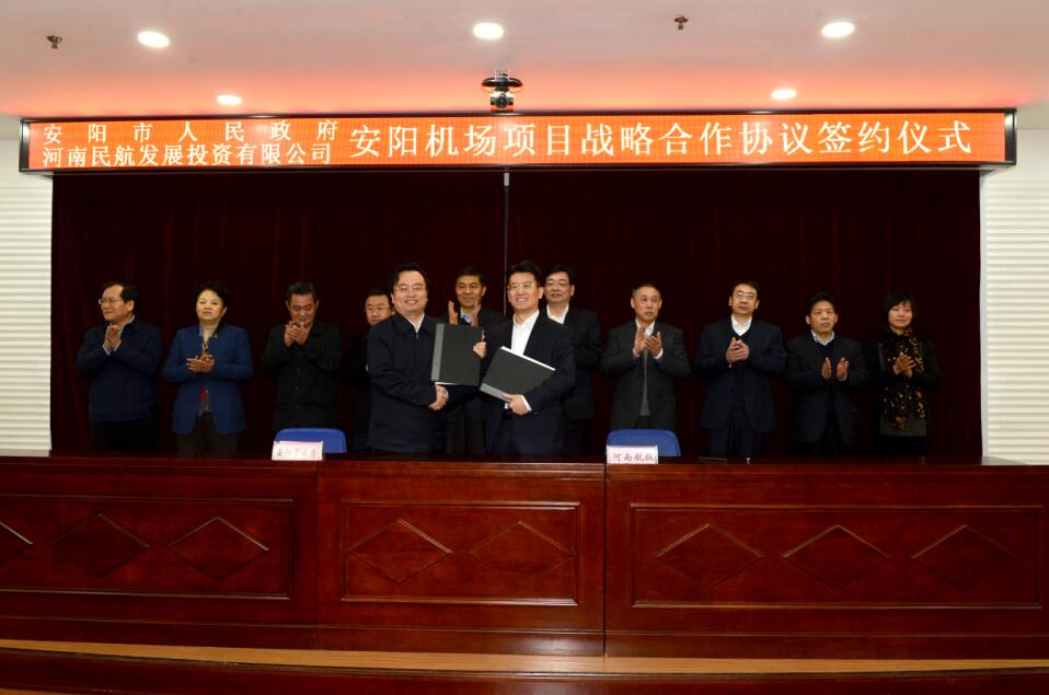 12月29日,河南航投與安陽(yáng)市政府在安陽(yáng)簽署《戰(zhàn)略合作協(xié)議》,在新年前就安陽(yáng)豫東北機(jī)場(chǎng)的開(kāi)工奠基舉行簡(jiǎn)短而隆重的儀式。