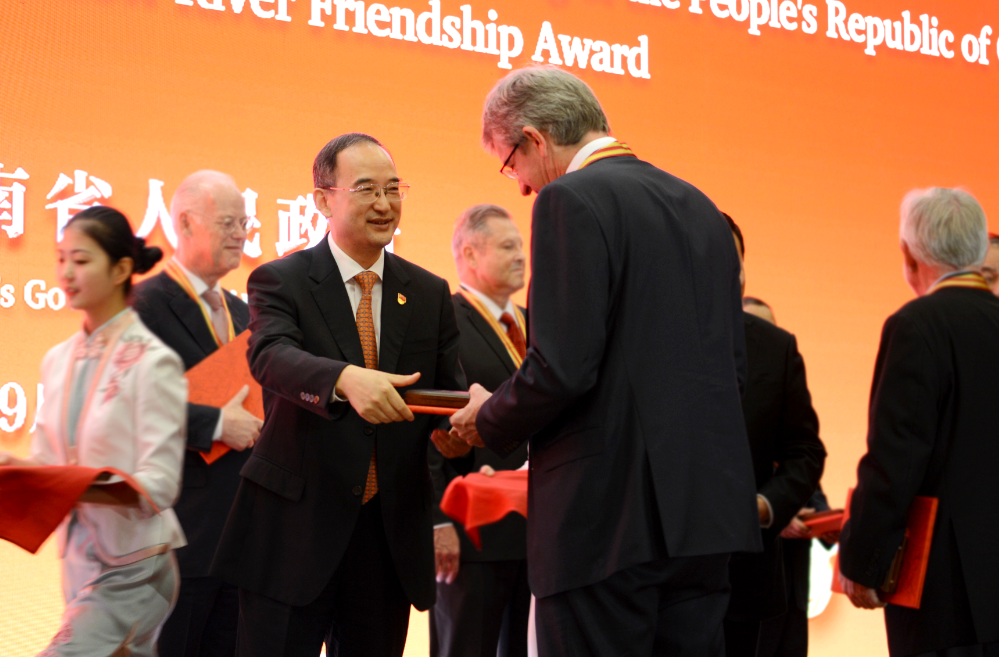 9月28日,河南省政府在黃河迎賓館隆重舉行招待會,熱烈慶祝中華人民共和國成立69周年,省委常委、統(tǒng)戰(zhàn)部部長孫守剛,省委常委、常務(wù)副省長黃強出席招待會,會上宣布了盧森堡貨航總裁兼CEO理查德·福森等9位獲得了2018年“黃河友誼獎”。河南航投董事長、黨委書記張明超一同參會,并代表河南航投向盧貨航代表表示熱烈祝賀。這是豫盧“雙樞紐”專家第三次獲此殊榮。