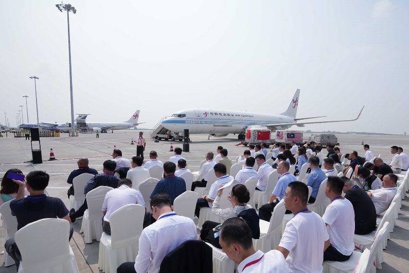 8月25日上午,吉隆坡-鄭州鮮食榴蓮首航接機儀式在鄭州機場舉行,馬來西亞首批鮮食榴蓮進入中國市場,中馬航空貨運樞紐項目加速推進。中豫航空集團黨委書記、董事長張明超,總經(jīng)理、黨委副書記、副董事長柳建民;馬來西亞駐華大使館工作人員,馬來西亞榴蓮廠商公會代表和榴蓮貿(mào)易供應(yīng)鏈企業(yè)代表參加了儀式。