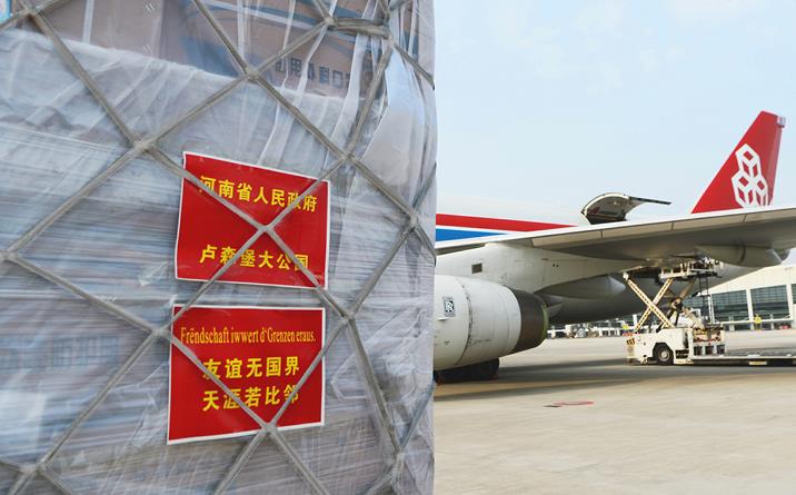 2020年2月,疫情爆發(fā)初期,盧森堡貨航和河南航投共同積極加入抗“疫”戰(zhàn)斗,除了為中國員工提供口罩、消毒棉片、防護服等物資支援外,還在原定的春節(jié)假期期間,加運了95噸醫(yī)療物資馳援中國抗“疫”一線,并根據(jù)國內(nèi)外市場的需要有序增加運力。當(dāng)年3月,河南省委、省政府為盧森堡緊急籌措了包括4500件醫(yī)用防護服、50萬只醫(yī)用外科口罩、5700只醫(yī)用N95口罩、10萬雙醫(yī)用手套、600只額溫槍、2萬瓶洗手液、1080副醫(yī)用護目鏡等在內(nèi)的首批醫(yī)療物資,并通過鄭州—盧森堡貨運航班直接運抵盧森堡。鄭盧“空中絲綢之路”被盧森堡政府譽為“盧森堡及其他歐洲地區(qū)的生命線,是一條雪中送炭的空中橋梁?!痹谶@條絲路的連接下,豫盧雙方成為共建共享、休戚與共的“一家人”。